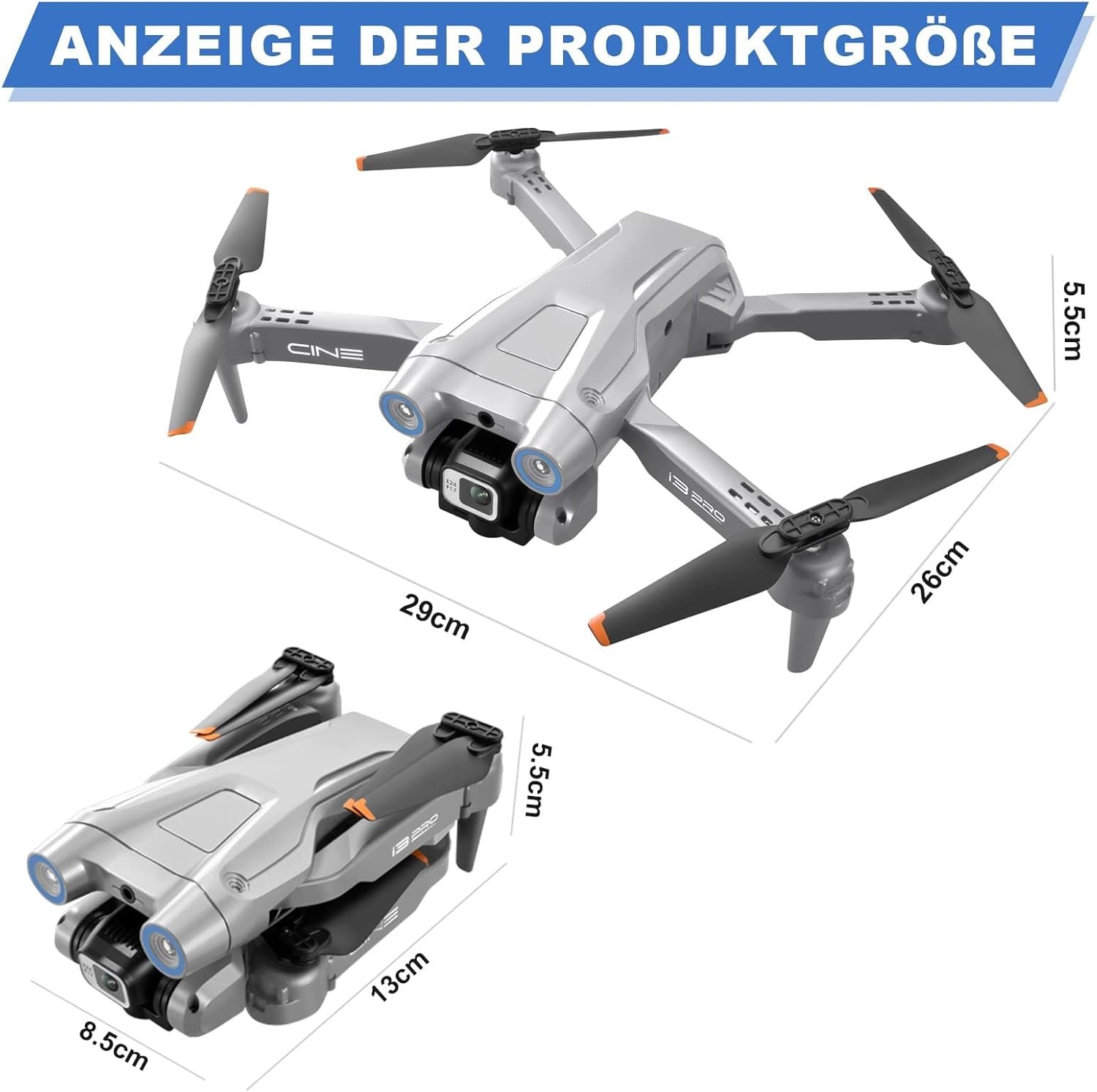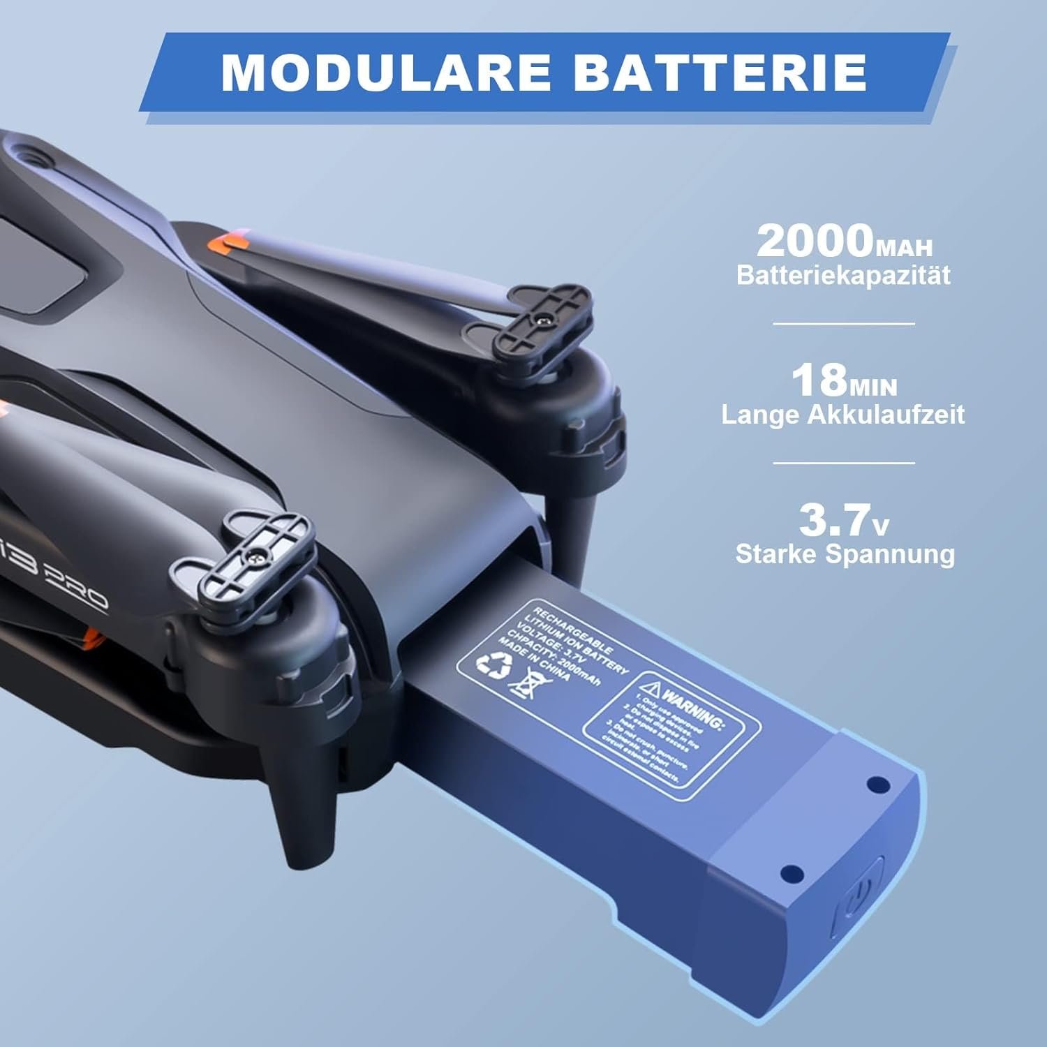 • Portable mini drone, long flight time: folded size 13 x 8.5 x 5.5 cm, unfolded size 29 x 26 x 5.5 cm. 2 x modular batteries, 3.7 V 2000 mAh, and powerful batteries support a flight time of up to 2 x 18 minutes. Charge safely, fly longer.