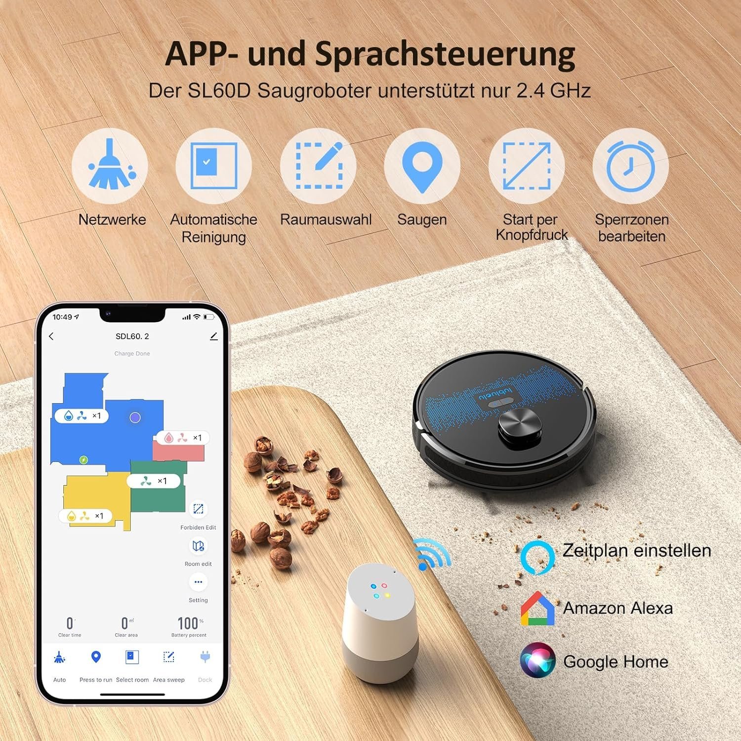 Radius von 8 Metern zur Optimierung der Abdeckung, Saugroboter mit Lasernavigation helfen bei der gründlichen Reinigung Ihres Hauses